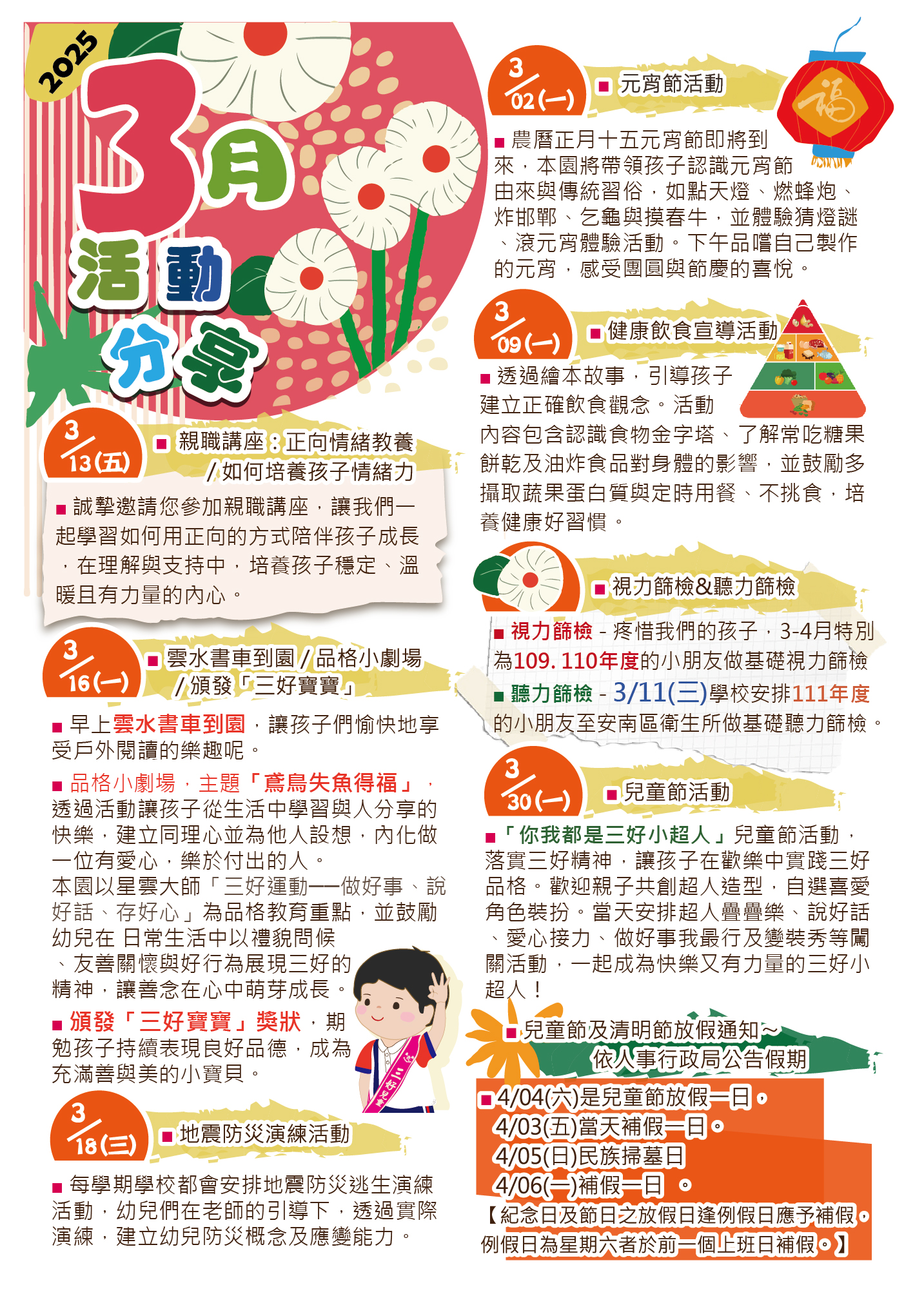 佛光山慈航幼兒園115年03月份活動預告